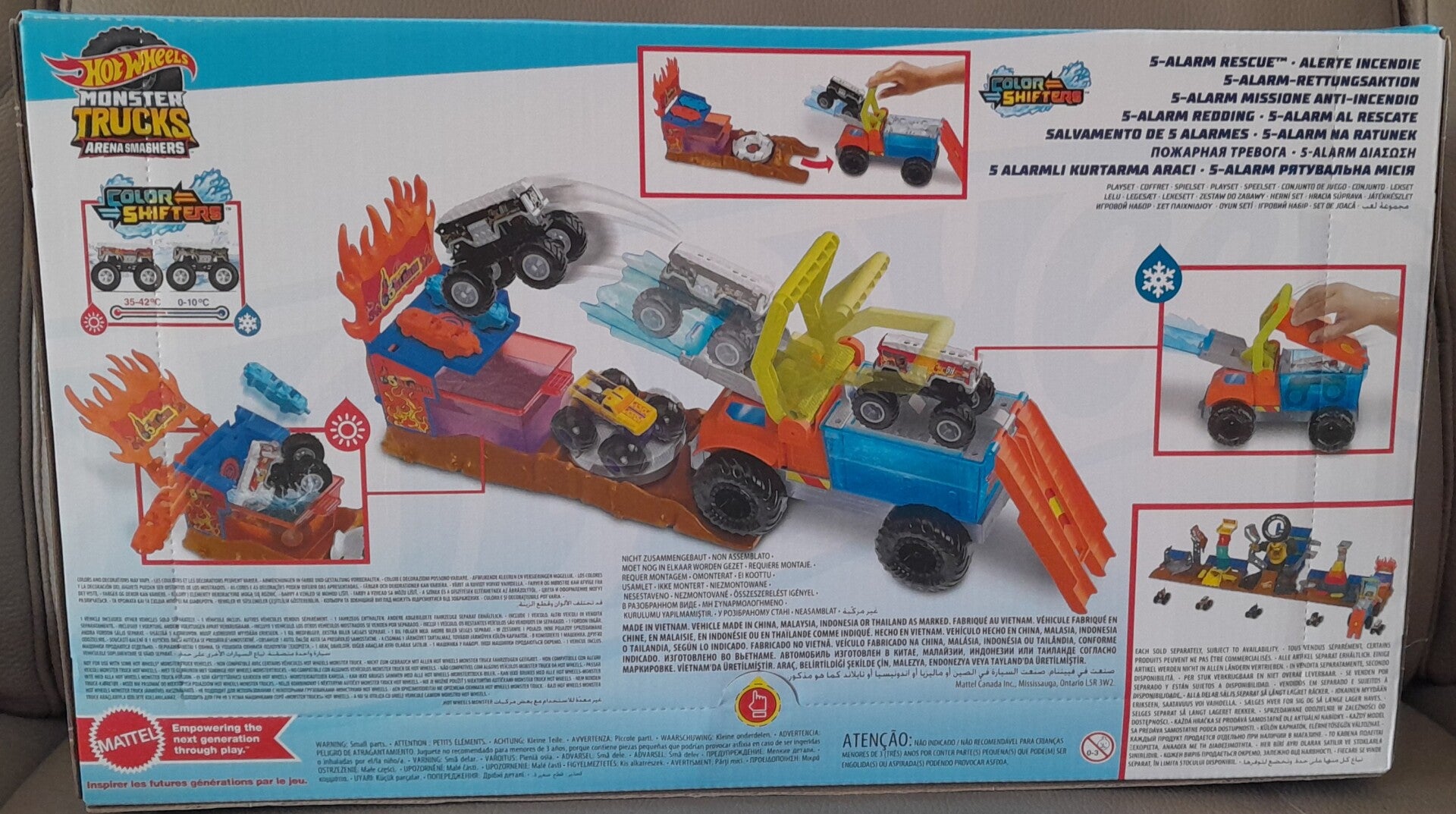 • Beschrijving: Een spannende speelset met de “5 Alarm” Monster Truck uit de bekende Hot Wheels Color Shifters-serie. Dit model verandert van kleur door gebruik van water en voegt een verrassend element toe aan het spel.