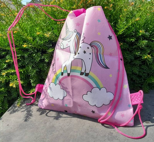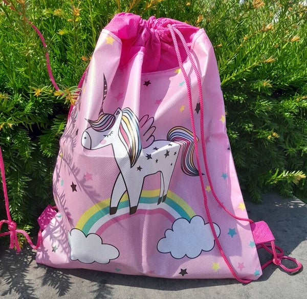 unicorn eenhoorn rainbow regenboog rugtas - tas - rugzak - gymtas - kinderrugzak - 35cm x 28cm - Roze leuke kleine tas voor kinderen met een unicorn regenboog print. let op! Deze tas is niet geschikt voor natte kleding of goederen. Formaat: 35cm x 28cm