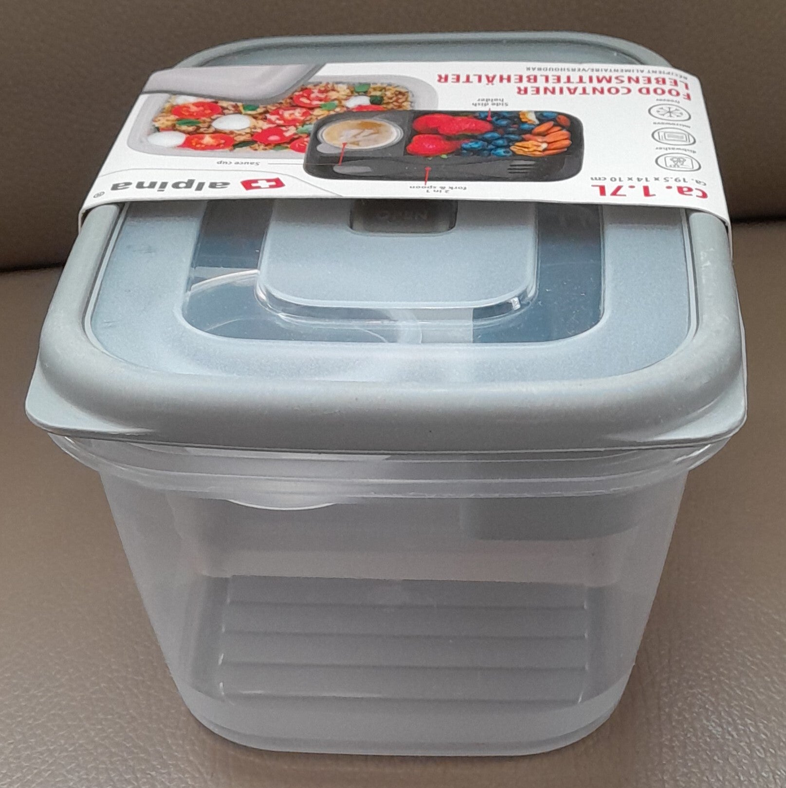 Alpina 2 in 1 Broodtrommel - Food Container - 1.7 Liter - 4 Delig - Grijs