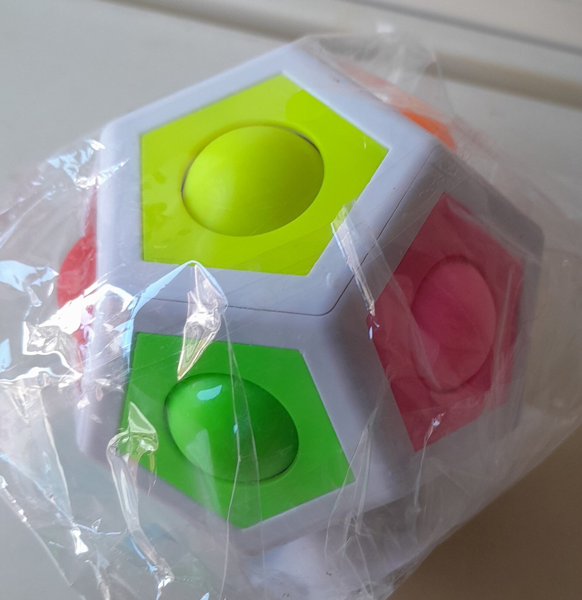 de Magic Puzzelbal bevat gekleurde balletjes en