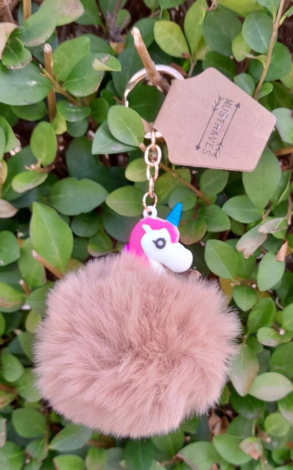 een leuke en zachte sleutelhanger in de vorm van een fluffy bol met daarop het hoofd van een eenhoorn! de afmetingen van deze fluffy sleutelhanger zijn 8 x 3 centimeter. een leuk accessoire!